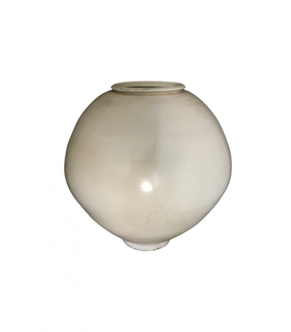 본 작품은 구연부의 곡선미, 중량감, 수공 성형 흔적을 통해 18세기 초중반 달항아리의 전형을 잘 보여줌.